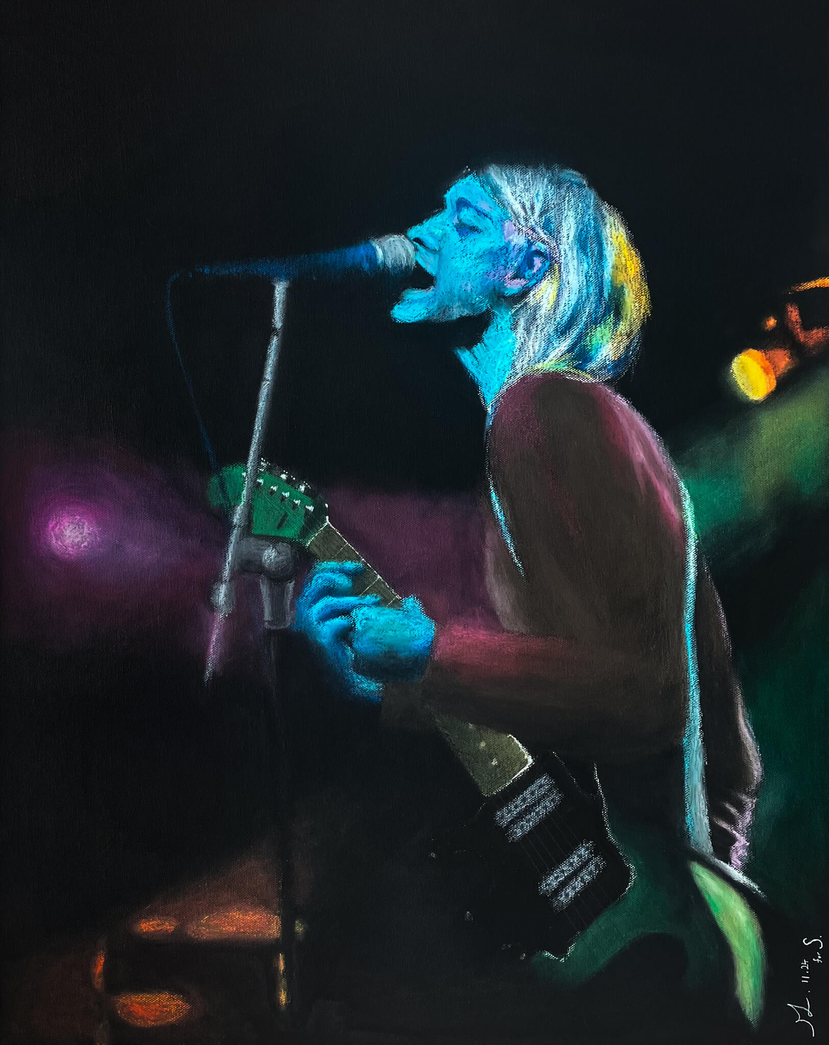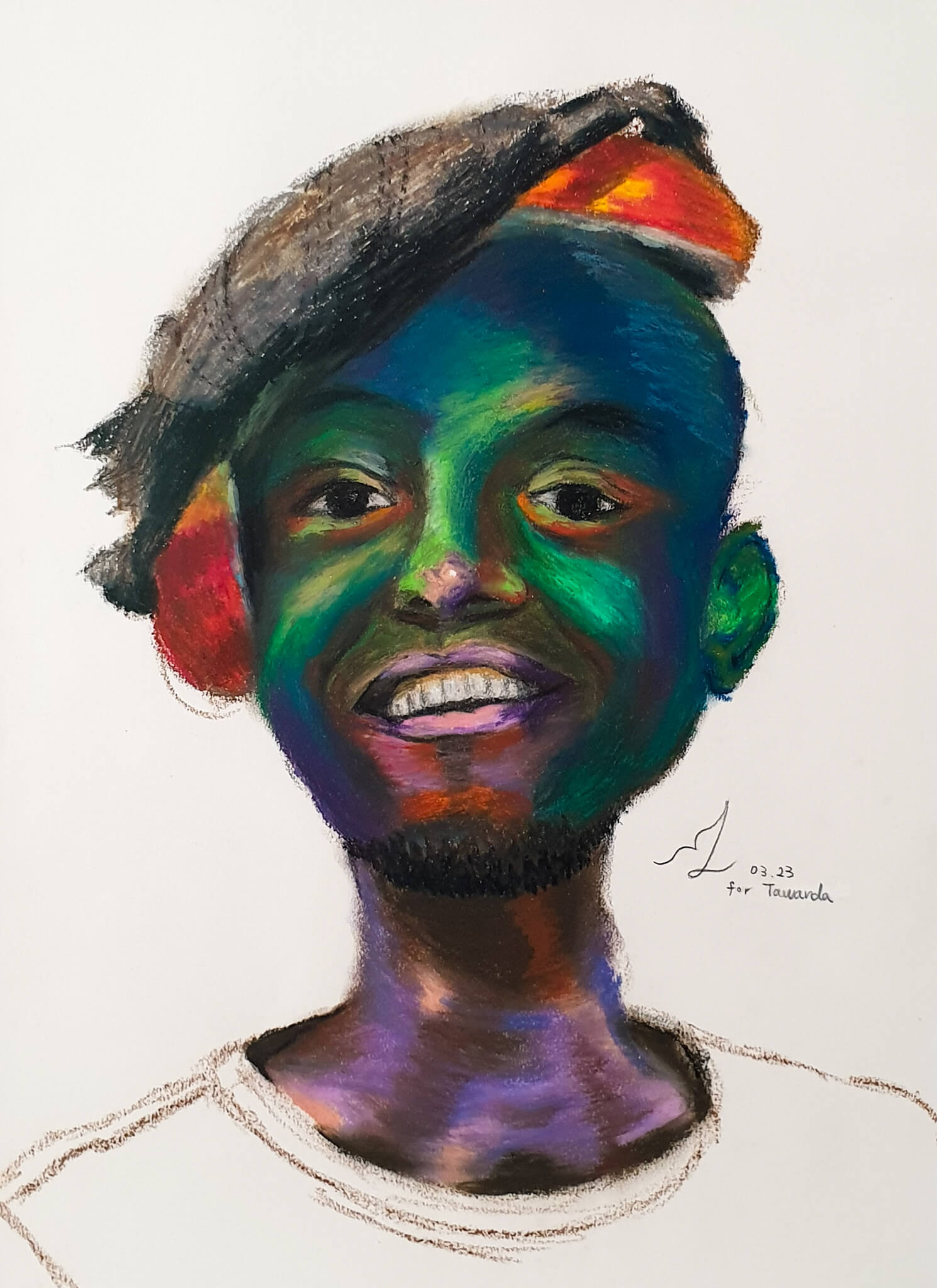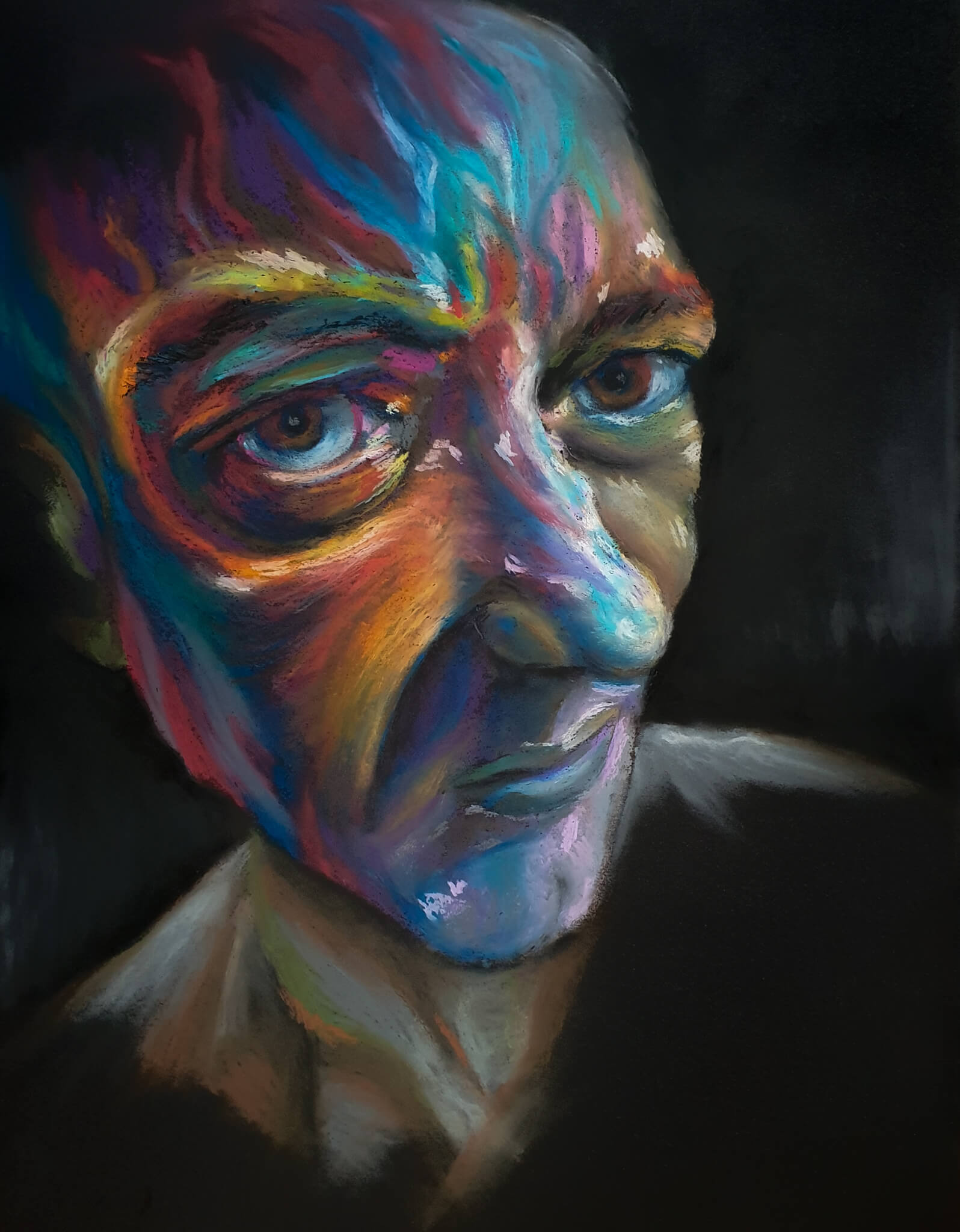 Blending impressionist influence with bold, Fauvist-inspired colour, my work explores the emotional depth of people through intuitive mark-making and vivid contrast.